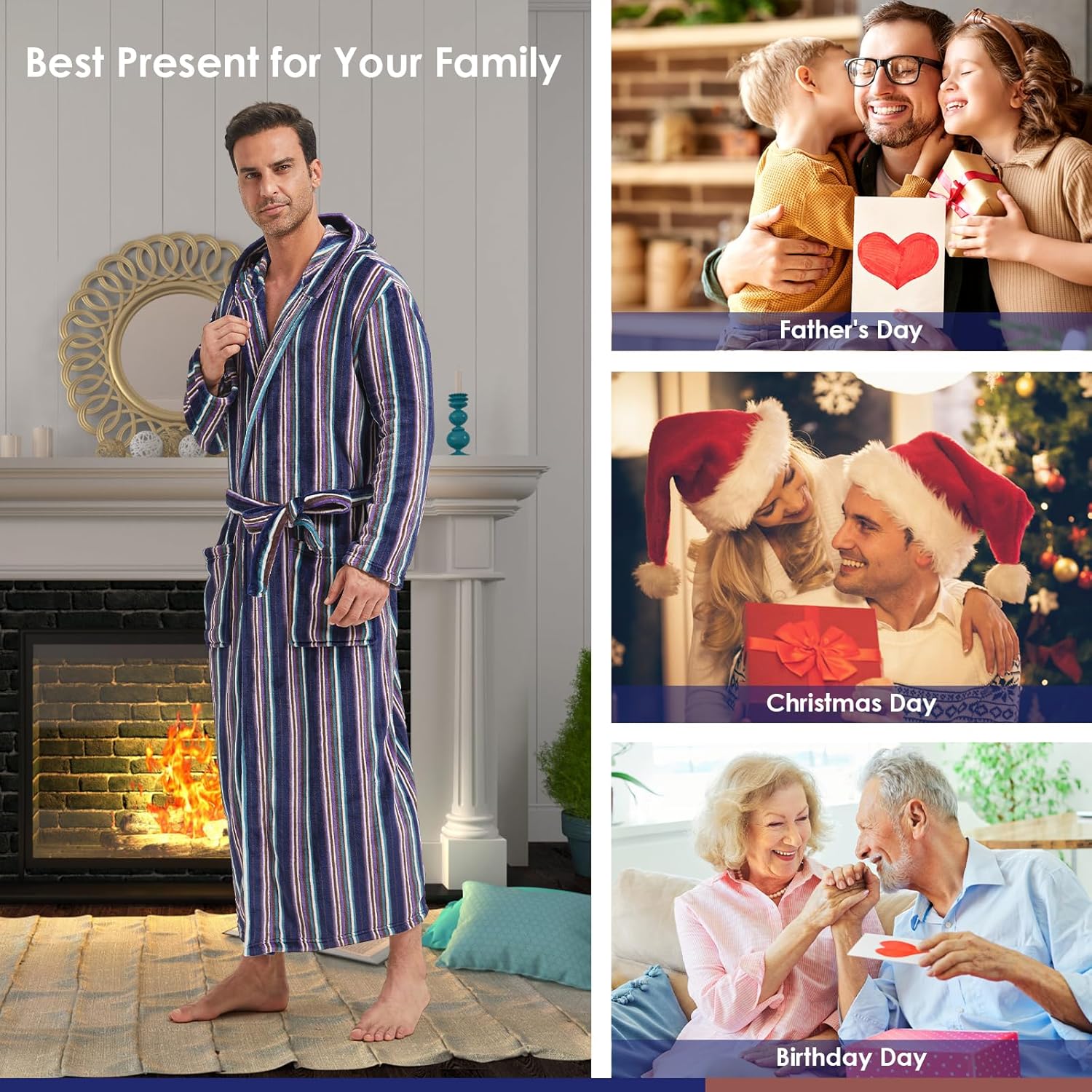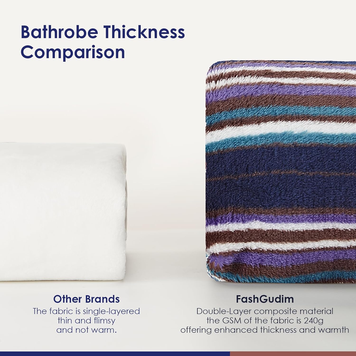 Comfortable Flannel Men's Bathrobe - James-Blue Striped-S/M-Nora Luxe
