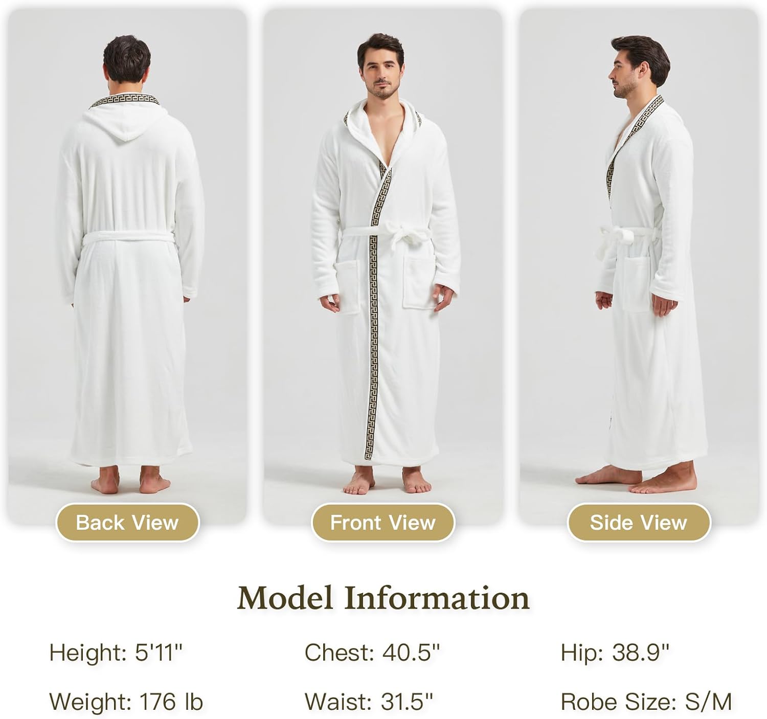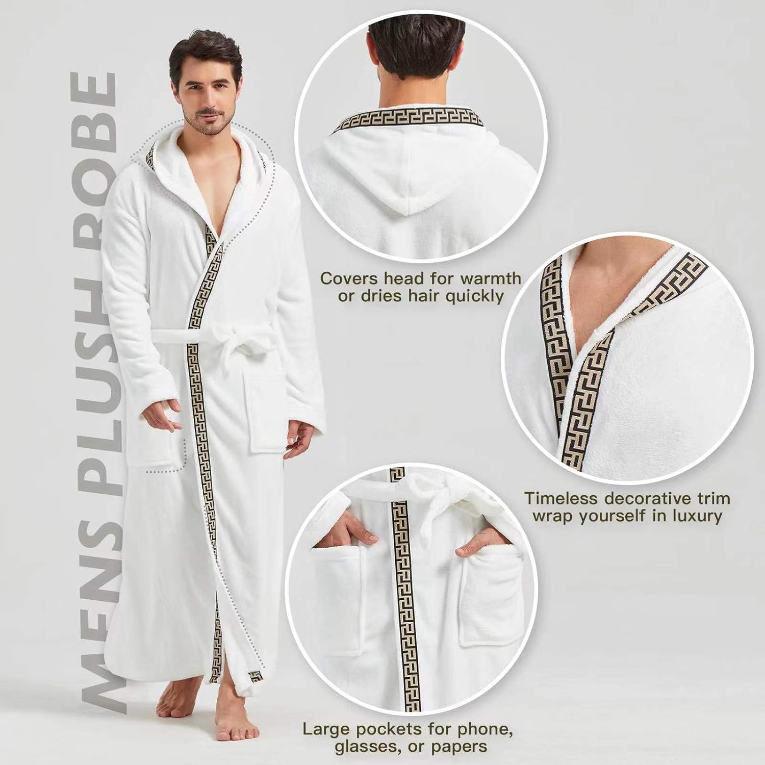 Comfortable Flannel Men's Bathrobe - James-White/Black-S/M-Nora Luxe