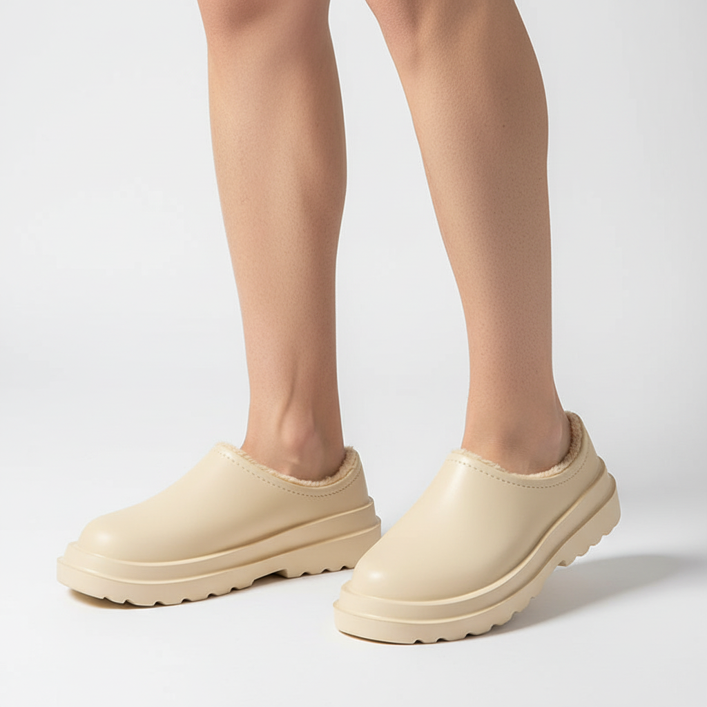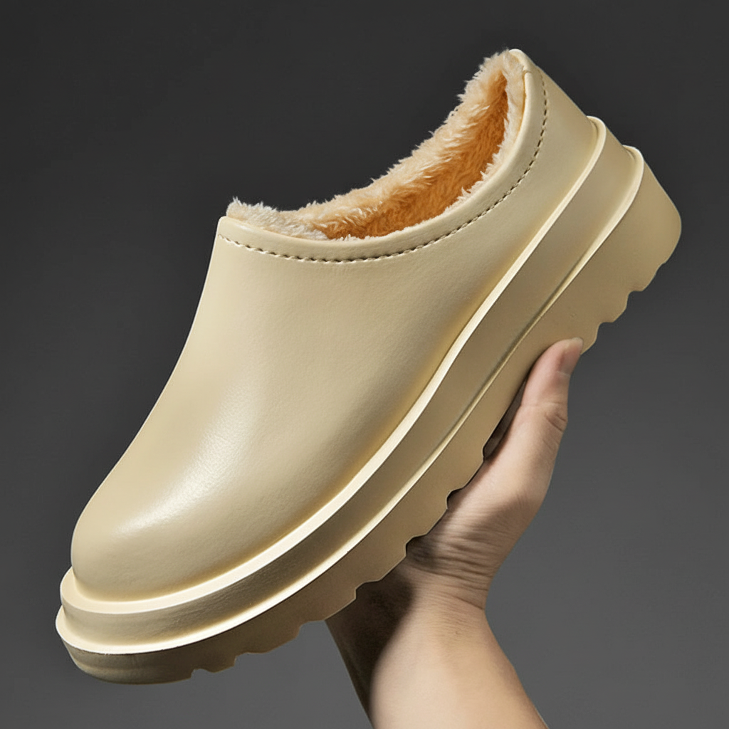 Cold and wet days often impede small everyday walks. These slippers offer a soft, plush inner lining and a waterproof outer layer as a solution. This way, your feet stay pleasantly warm whether at home or in the garden. The textured sole ensures each step is secure and grippy on smooth surfaces.