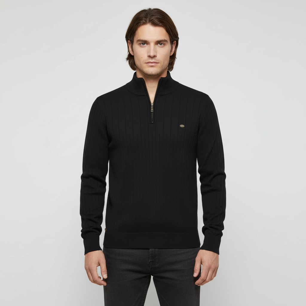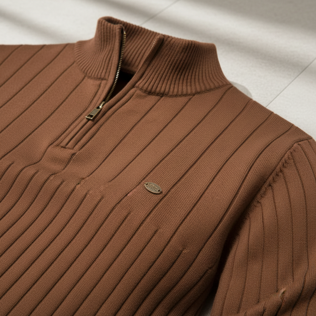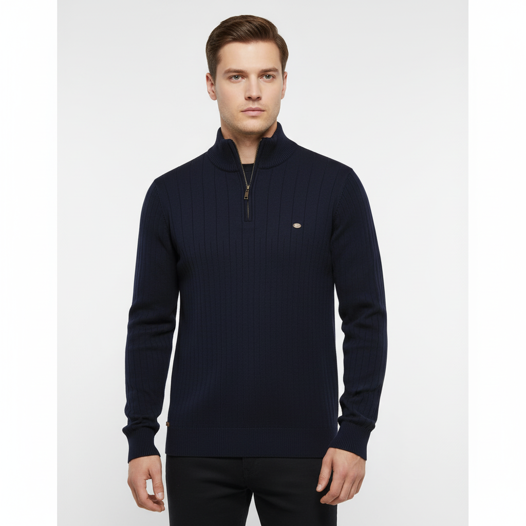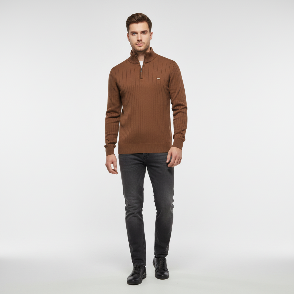 Knitted Sweater with Zip - Collar Sweater