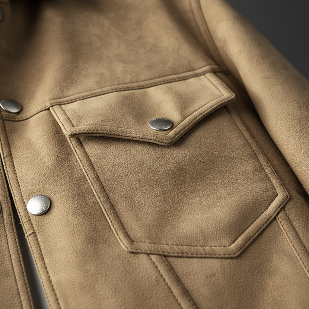 It can be frustrating to find a top that looks both casual and polished. This garment solves that problem with its elegant suede-like appearance and clean lines. The snap button placket and chest pockets provide practical functionality for everyday use. The lightweight, breathable material makes it comfortable in autumn and winter.
