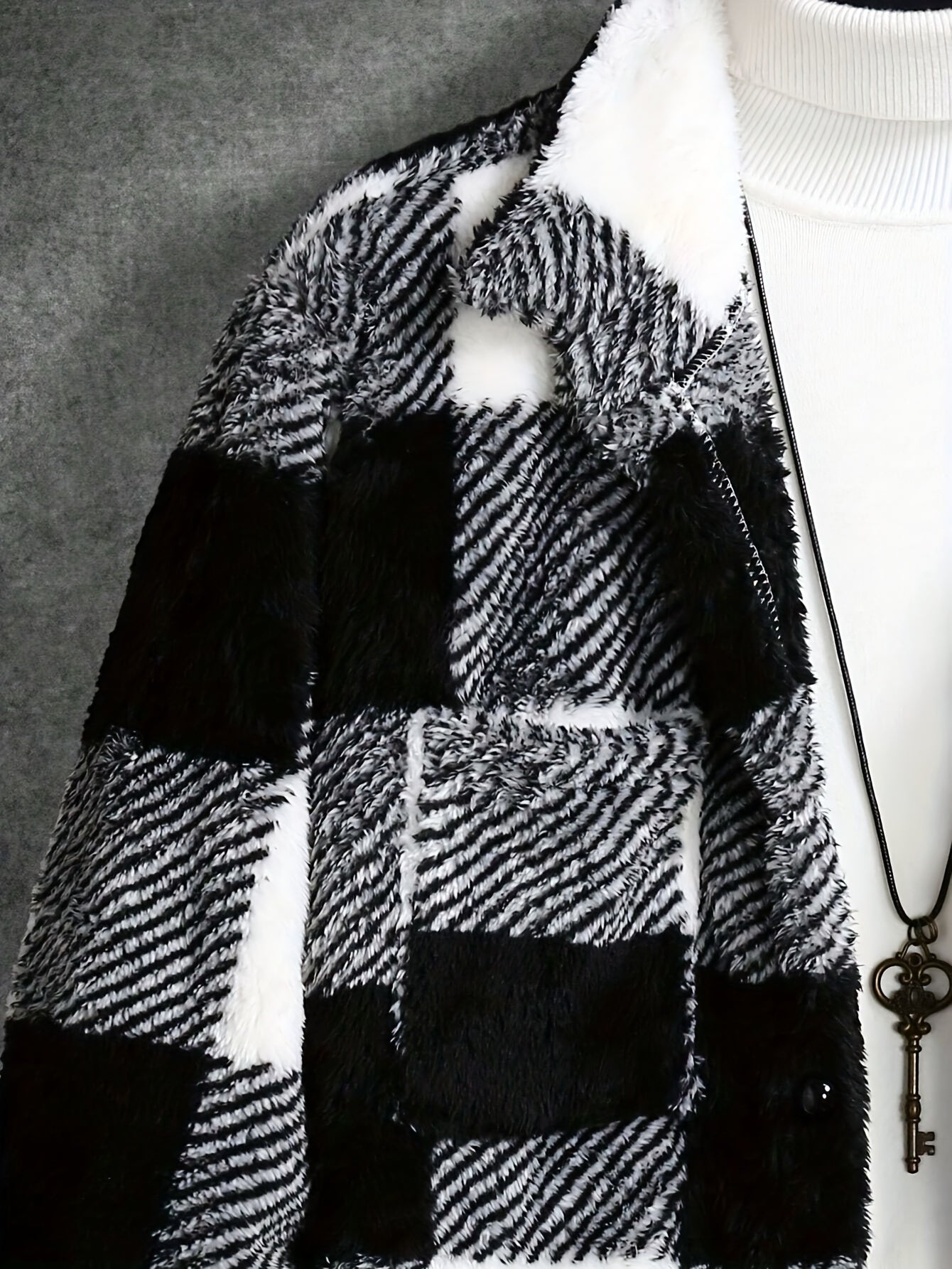 - Trendy color blocking and checkered design for a modern look.