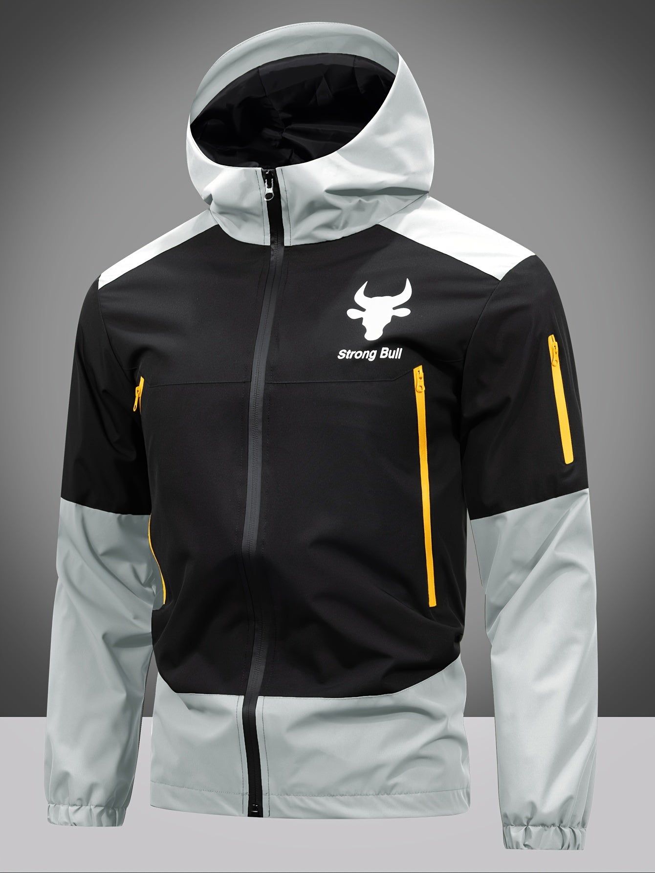 Men's Jacket with Zip, Hood and Colour Block Design - Milan