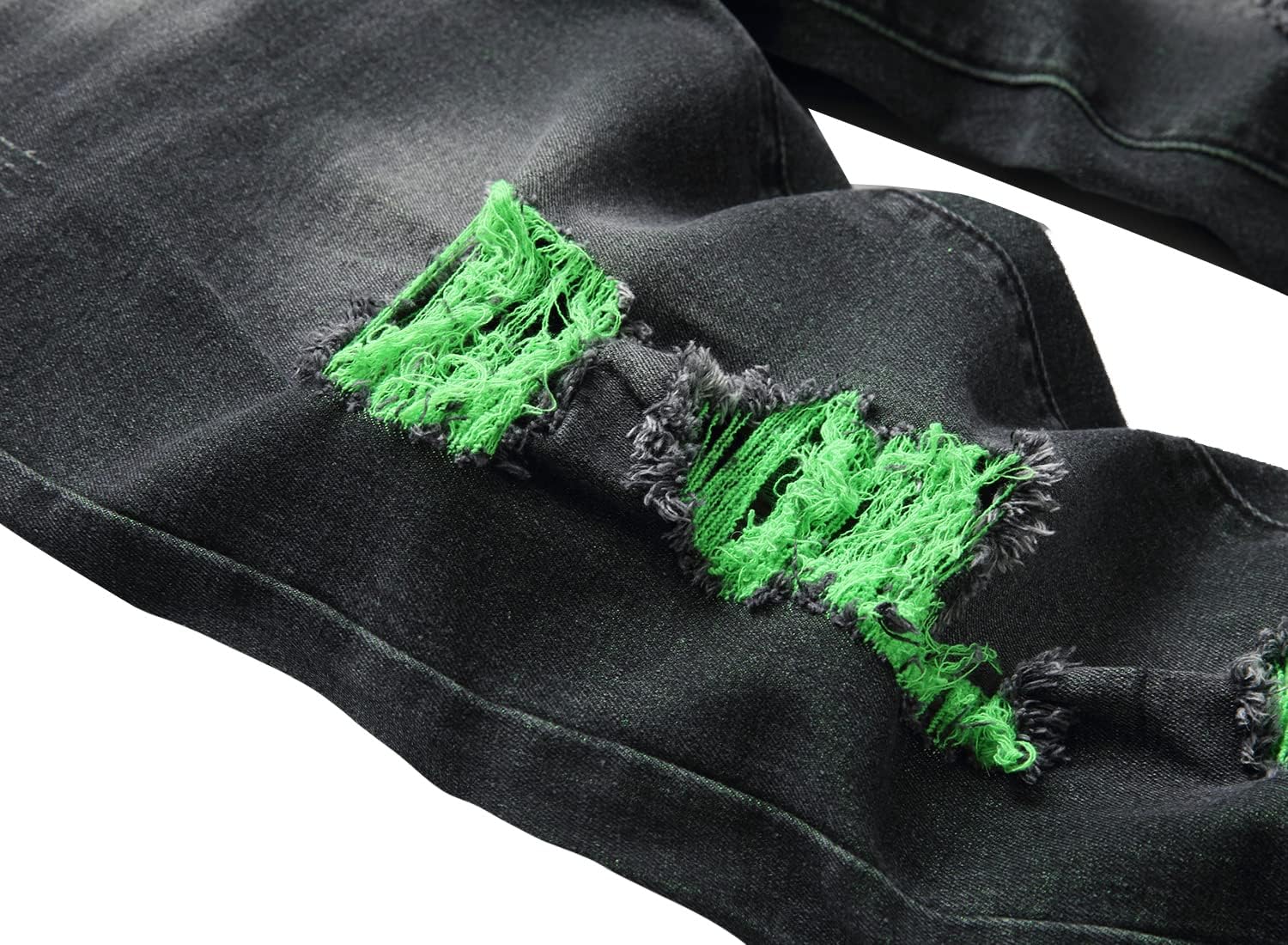 Men's Slim-Fit Ripped Jeans - Mick-Green-28-Nora Luxe