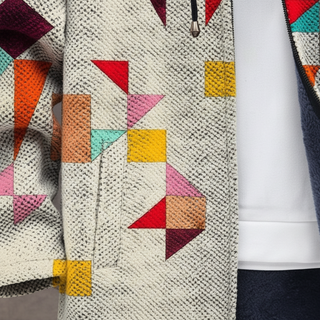 The geometric color block pattern draws attention without being overwhelming. It adds a creative and modern touch to your look.