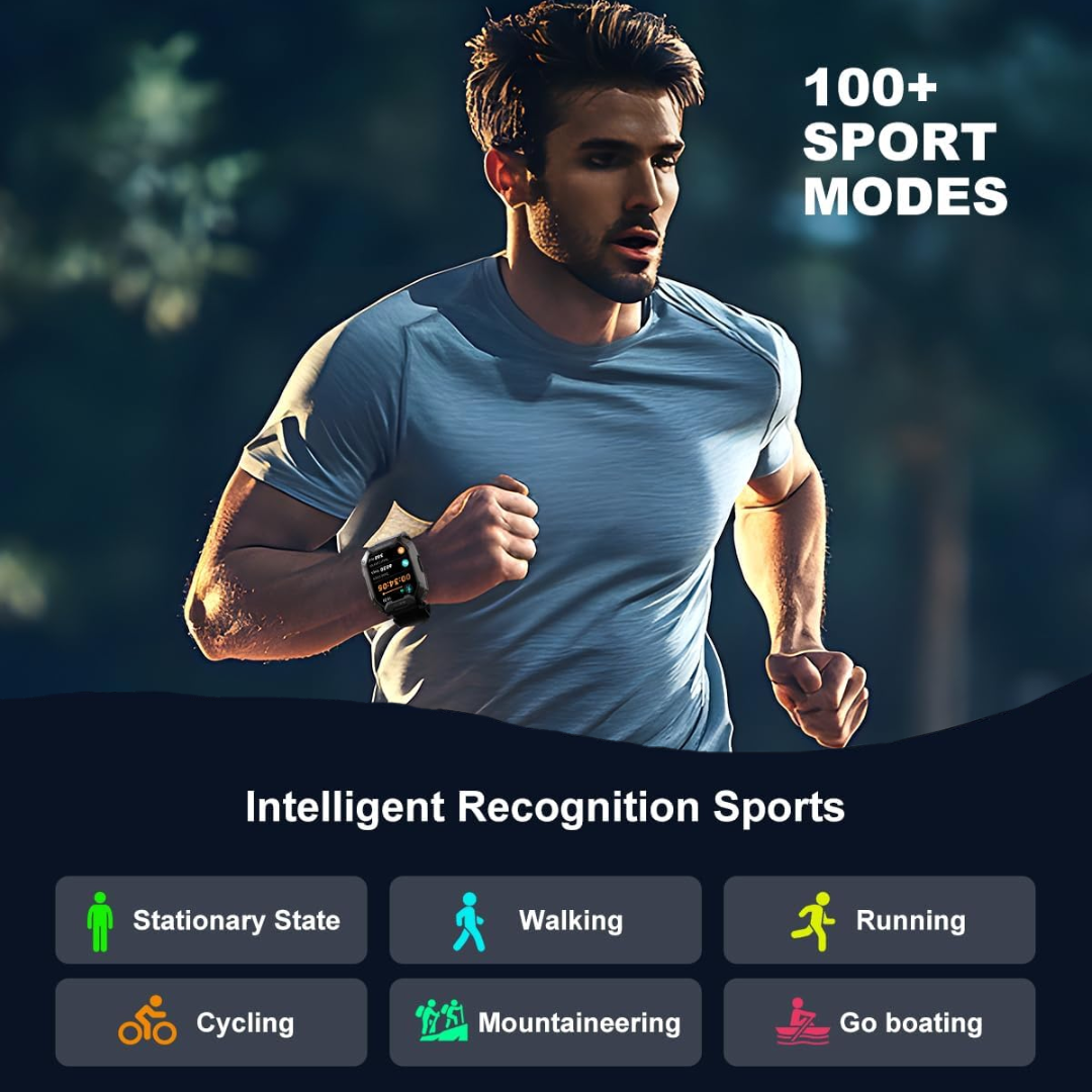 Experience robust functionality with our durable Steven military smartwatch, designed for adventure and convenience. With IP68 waterproofing, you can wear it while swimming or in tough outdoor conditions. Enjoy a long battery life of 80 days on standby and calling capabilities for hands-free convenience. Track your fitness with built-in blood pressure, heart rate, and other health monitoring features.