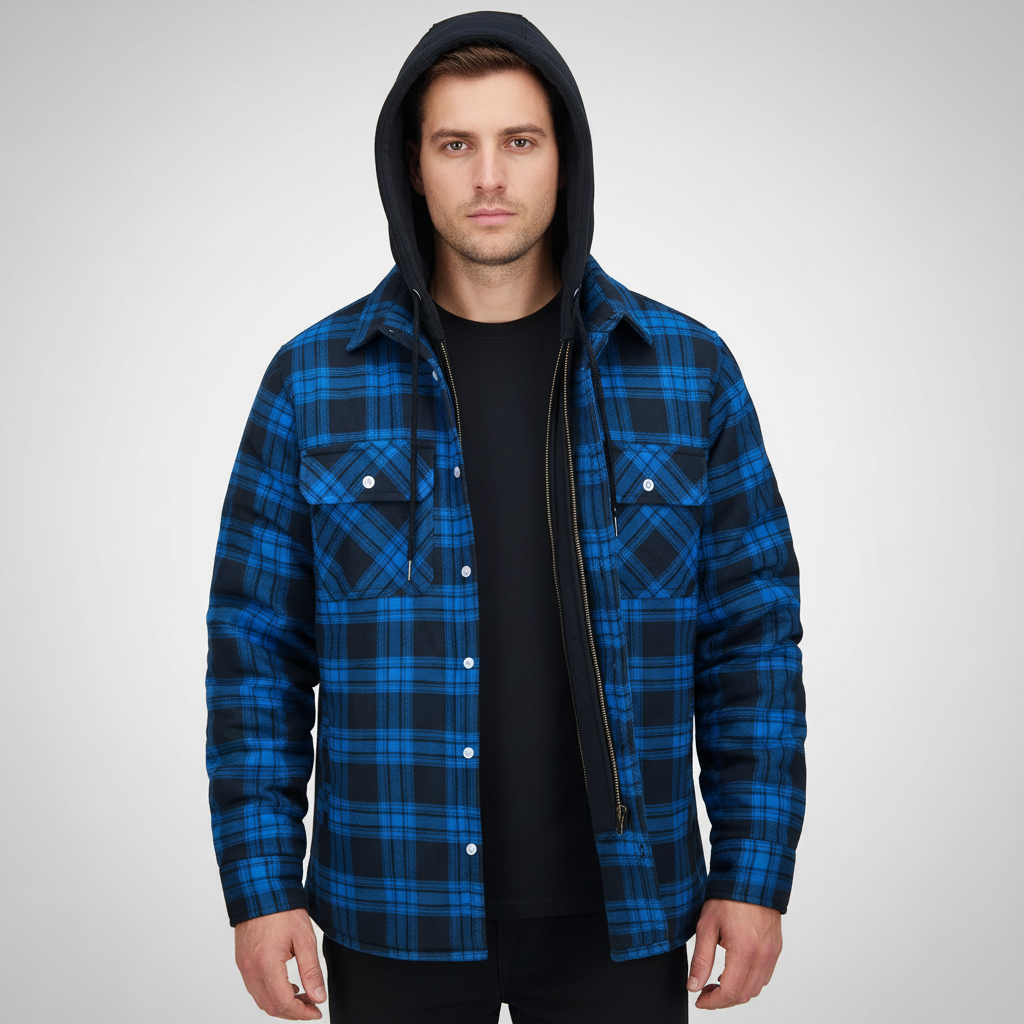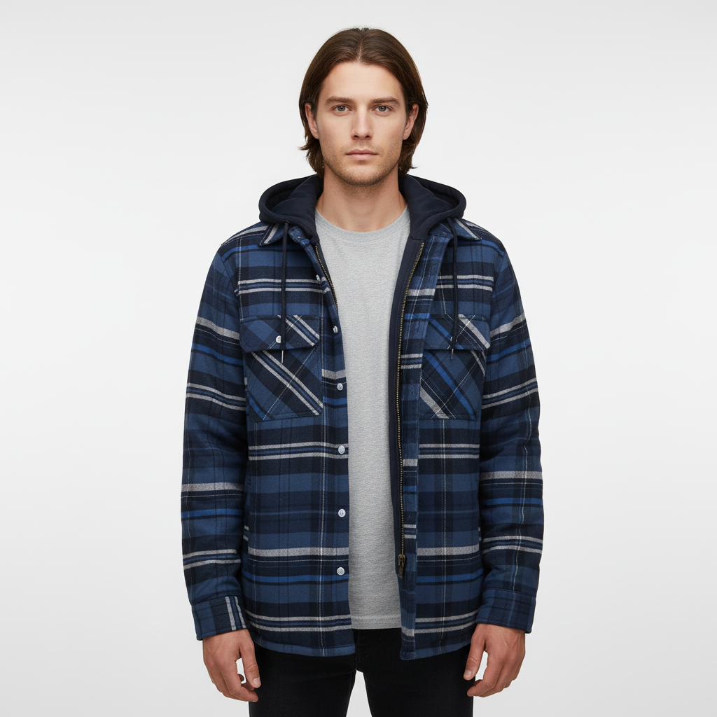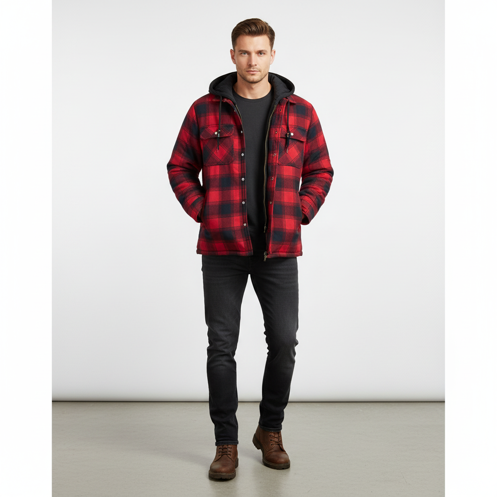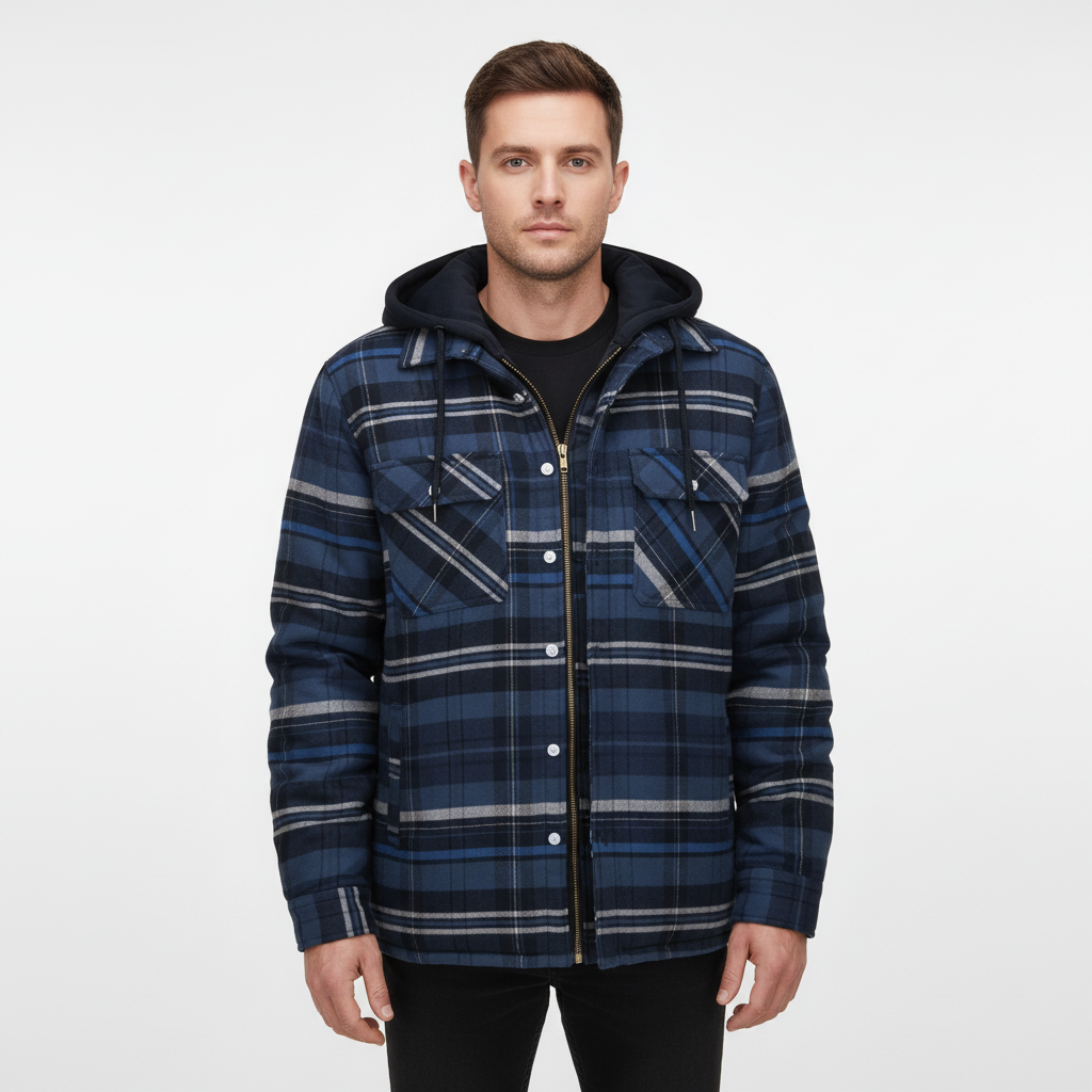 Finding a jacket that is both stylish and functional can be challenging. This model offers warm lining and a cool checked design, perfect for cooler days. With a practical hood and functional pockets, it is the ideal companion for everyday life or special occasions. Whether you're out for a walk or taking the train, you'll arrive warm and well-dressed.