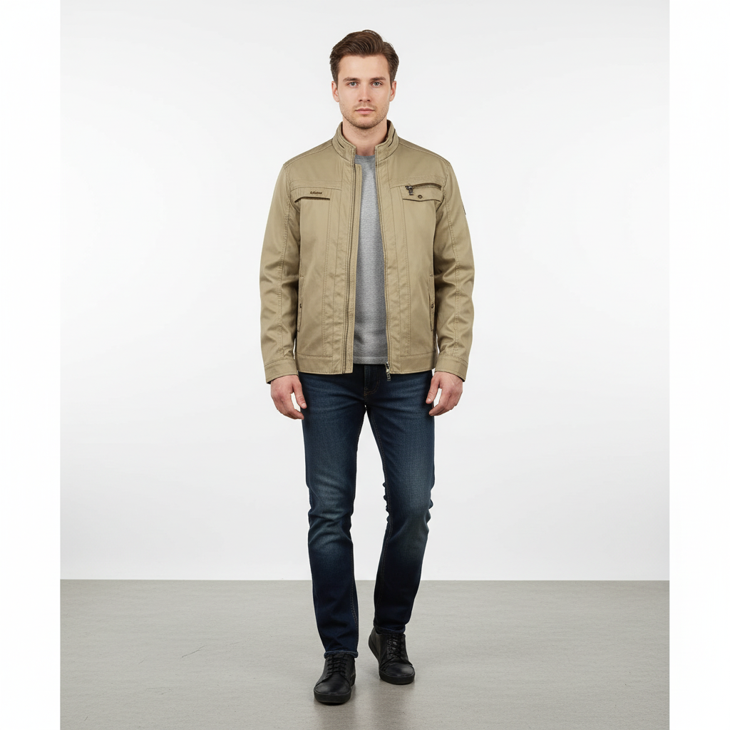 - Collar: Stand-up collar