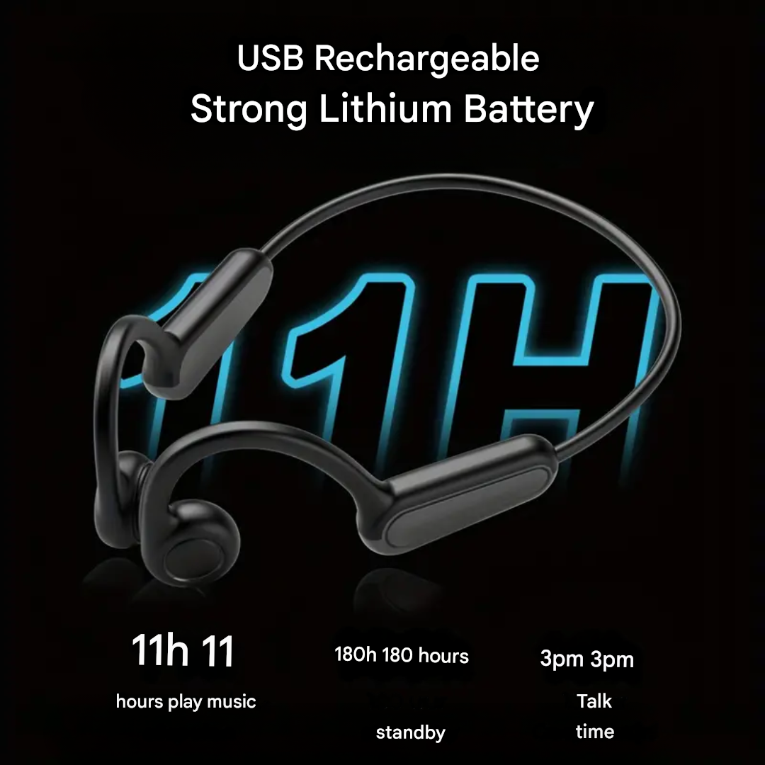 The bone conduction technology offers a safer listening experience by eliminating direct contact with the eardrum, thus reducing the risk of hearing damage from prolonged use. It also avoids the uncomfortable pressure on the ear canal often caused by traditional earbuds, as there are no earbuds placed in the ear canal.