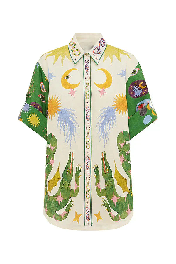 The summer set "Mira" combines vibrant colors with maximum comfort. Made from breathable, lightweight fabrics, it offers the perfect combination of freshness and style for hot days. The colorful blouse with a loose fit and the airy trousers with an elastic waistband adapt to every figure. Whether it's a beach walk or a garden party – "Mira" is your summer highlight. Mix and match the pieces together or wear them separately for versatile looks.