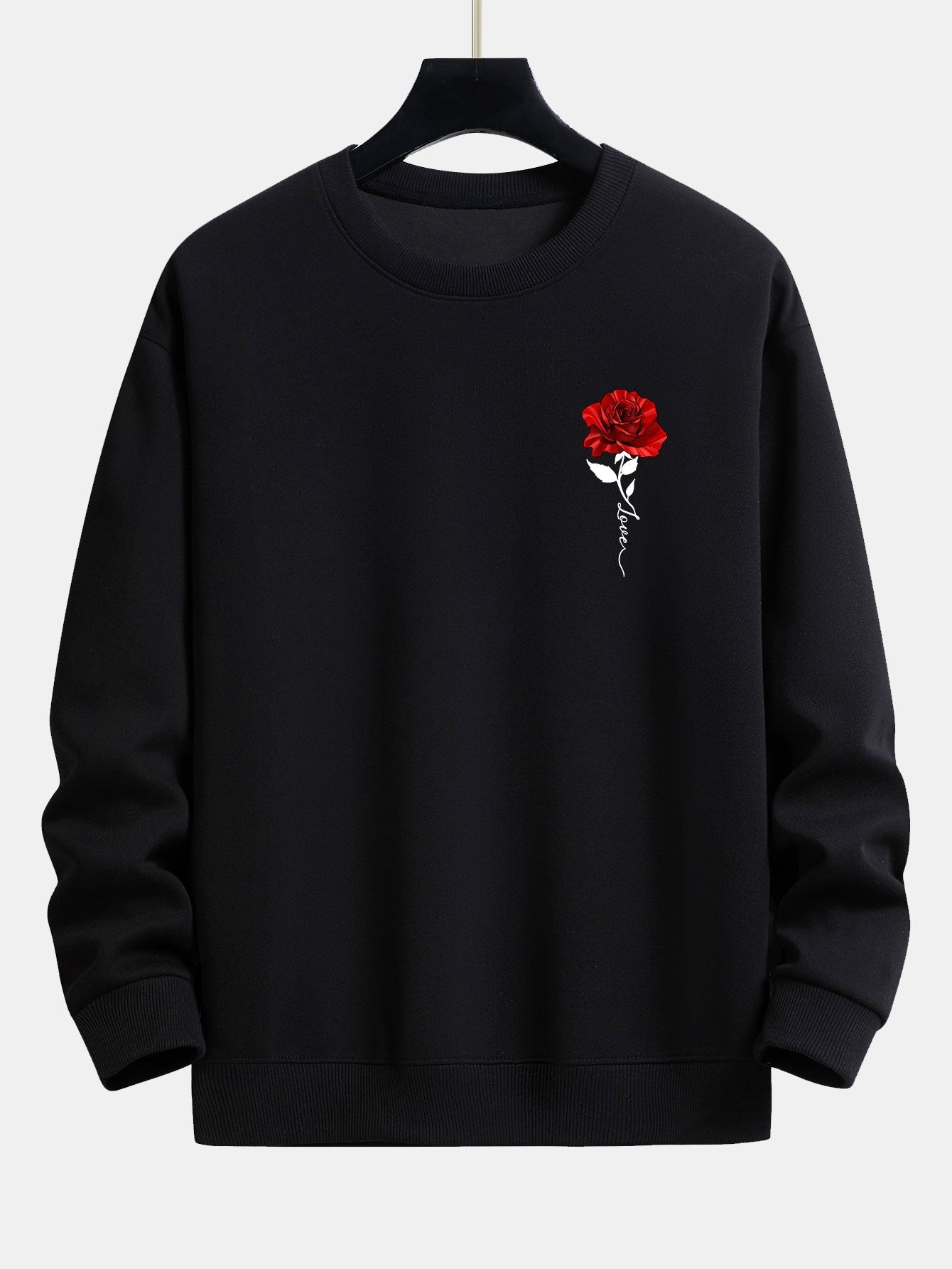 Ladies' Rose Print Sweatshirt - Amelia-Black-S-Nora Luxe