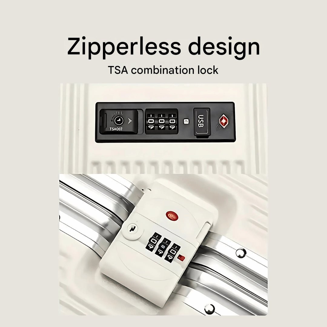 • Zipless Design: Aluminum frame with TSA lock for maximum security and lightning-fast access.