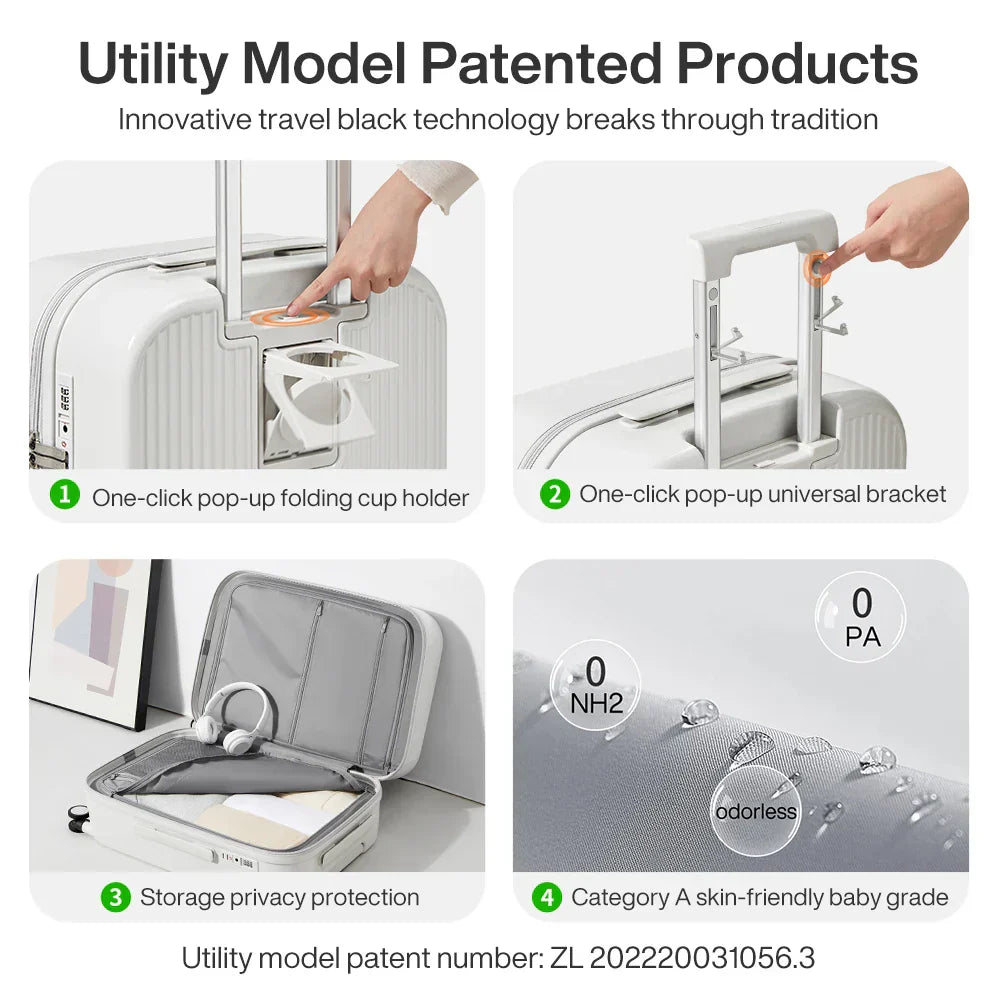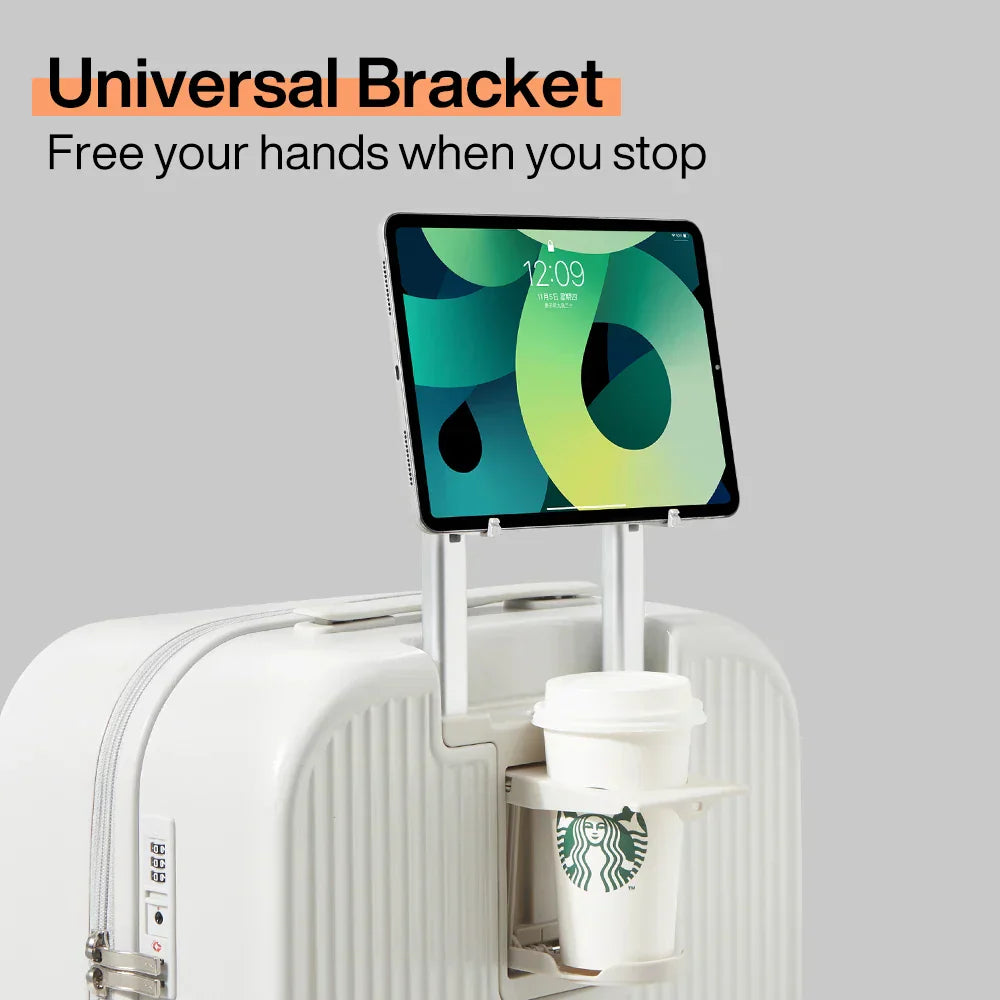 • Features: Cup/phone holder, 360° spinner wheels, tension straps, smooth telescopic handle