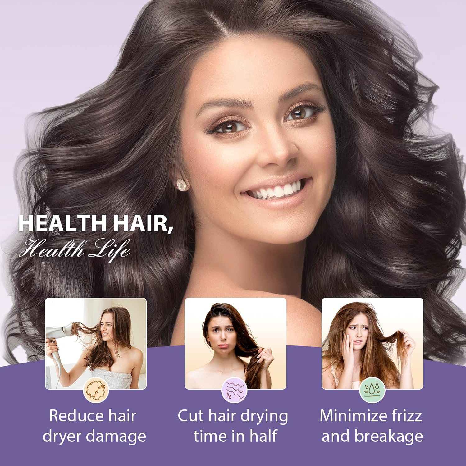 • Ultra-Absorbent Microfiber: Dries hair faster than regular towels, reduces frizz and damage.